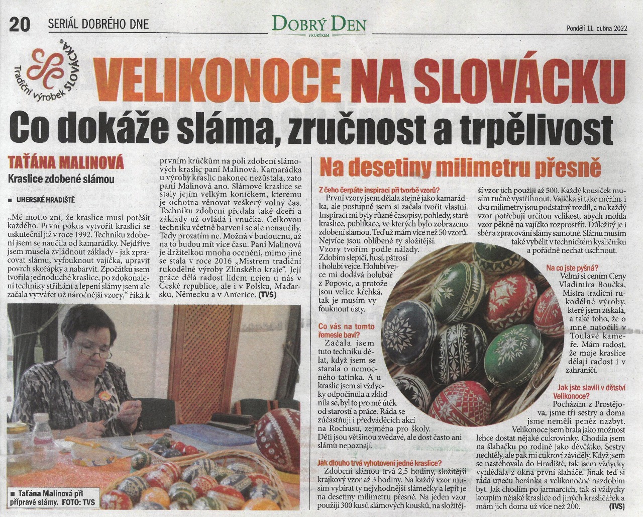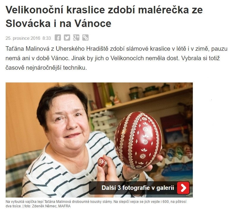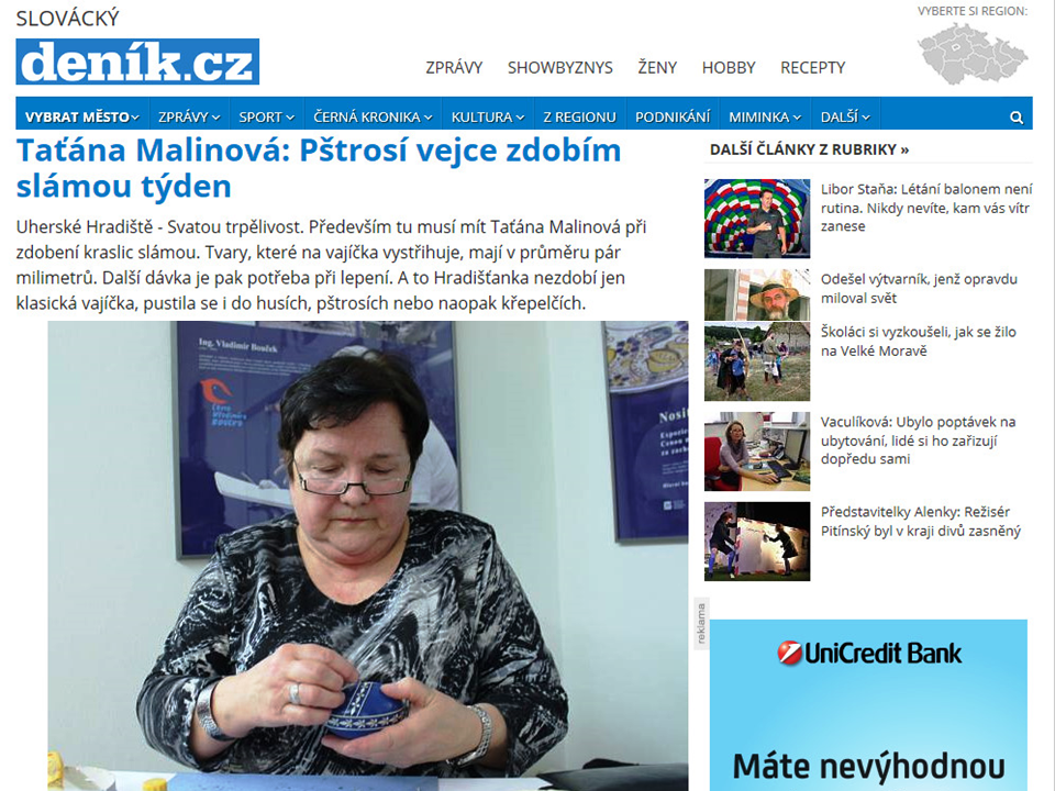ČLÁNEK: Taťána Malinová - výrobce kraslic zdobených slámou