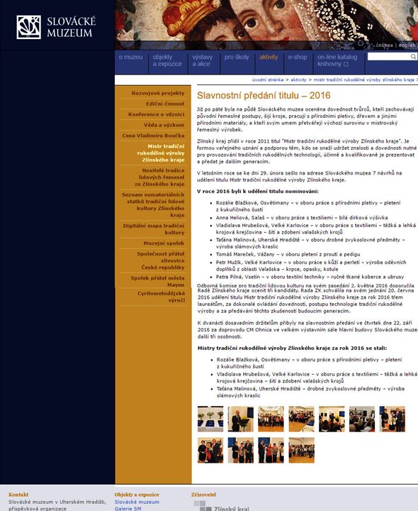 VYDÁNO: Slovácké muzeum v Uherském Hradišti - webové stránky