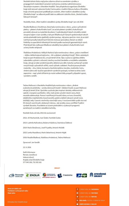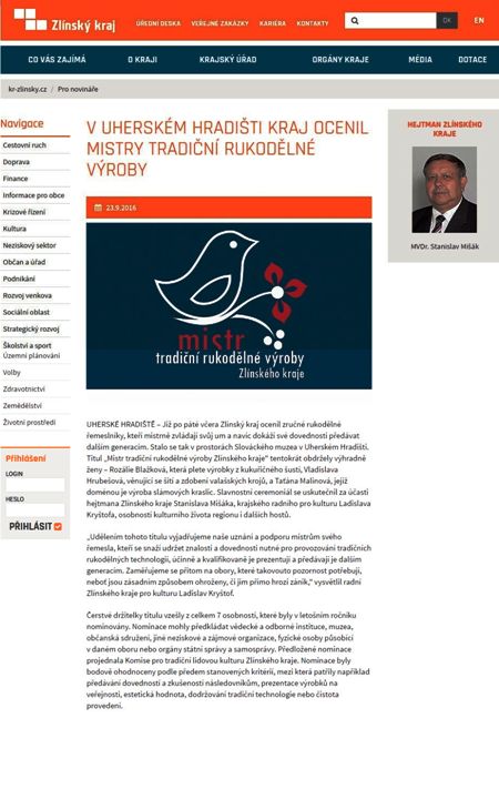 ČLÁNEK: V Uherském Hradišti kraj ocenil mistry tradiční rukodělné výroby