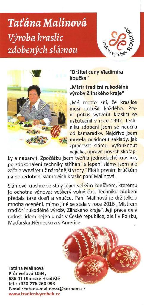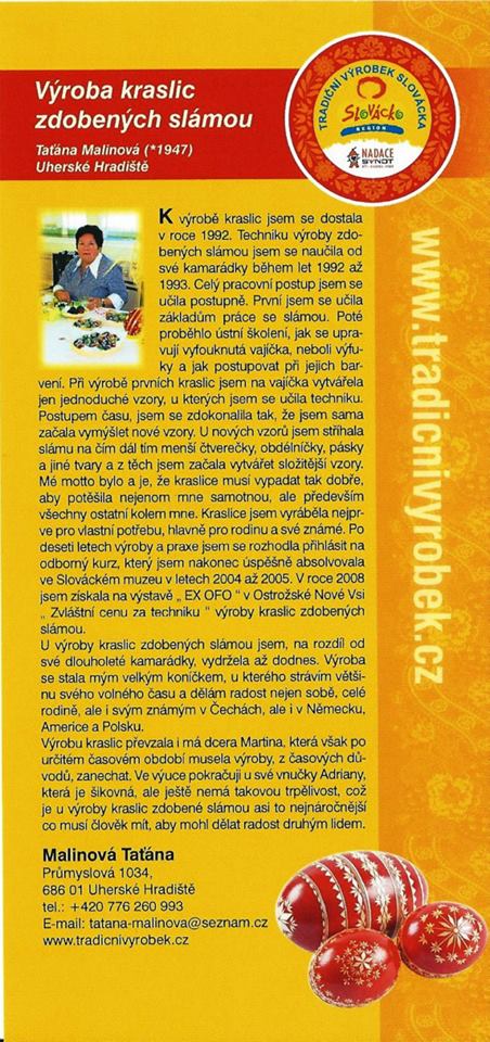 Leták - výroba kraslic s logem Tradiční výrobek Slovácka